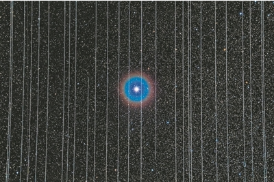 “星鏈”衛(wèi)星在天文照片上留下了條紋。圖片來源:美國國家光學(xué)紅外天文研究實驗室