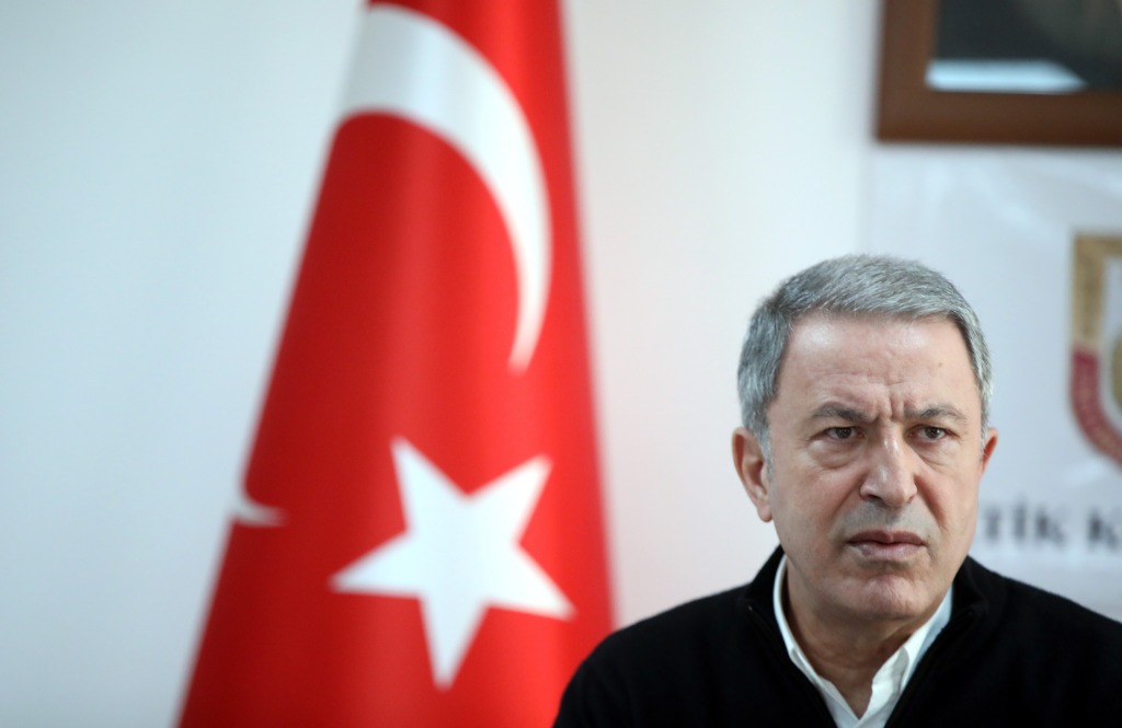 2020年3月1日,土耳其國防部長胡盧西·阿卡爾在土敘邊境省份哈塔伊視察時發(fā)表講話。新華社發(fā)