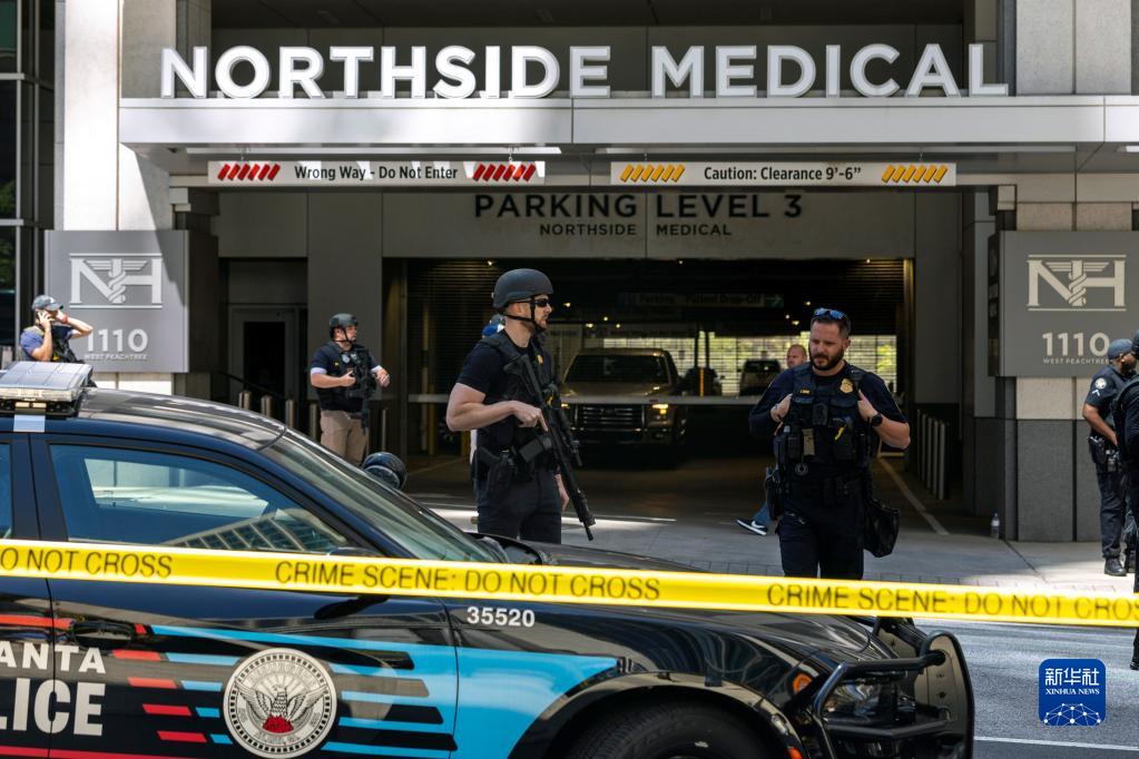 5月3日,執(zhí)法人員在美國亞特蘭大市發(fā)生槍擊事件的醫(yī)院附近執(zhí)勤。新華社/美聯(lián)