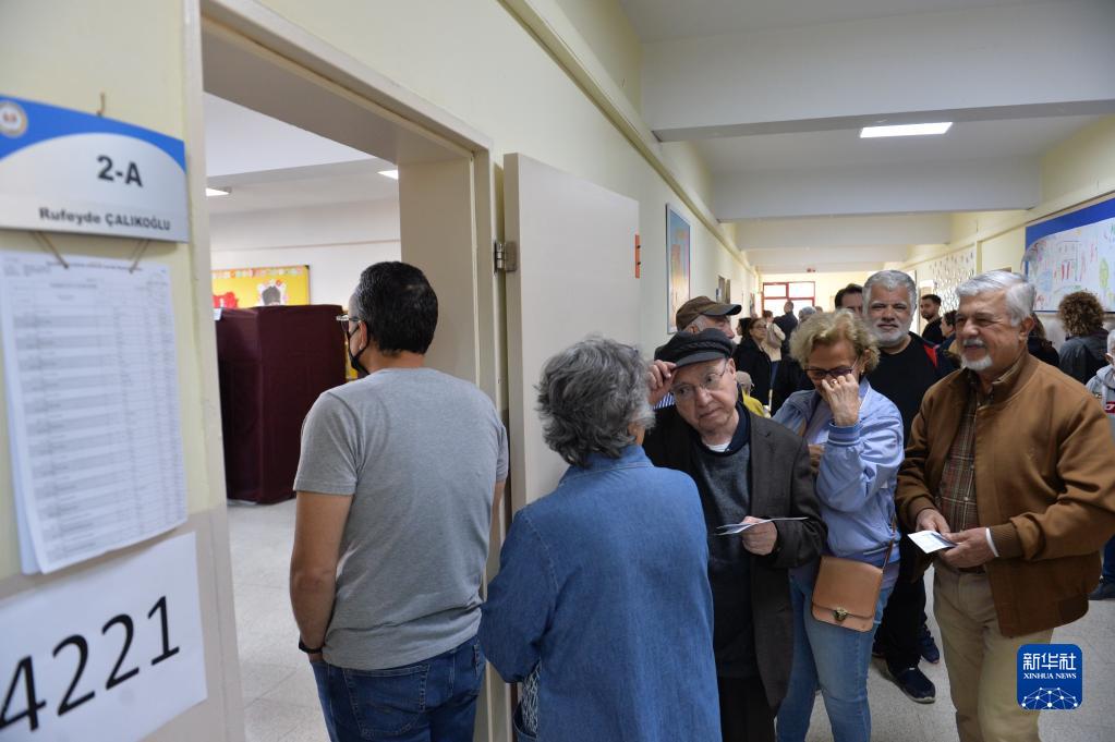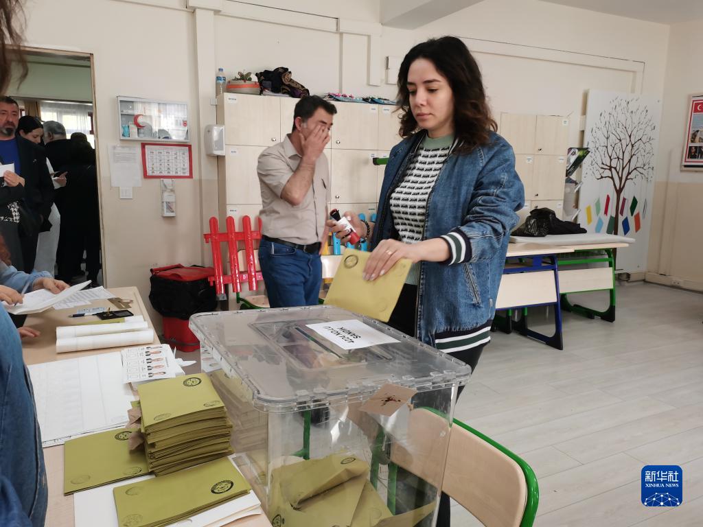 5月14日,在土耳其安卡拉,民眾在一處投票站參加投票。新華社發(fā)(穆斯塔法·卡亞攝)