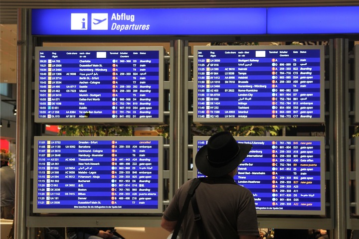 6月12日,在德國法蘭克福機場,一名男子查看航班信息。新華社記者 單瑋怡 攝