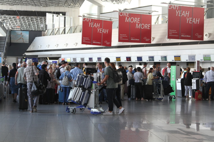 6月12日,在德國法蘭克福機場,旅客辦理乘機手續(xù)。新華社記者 單瑋怡 攝