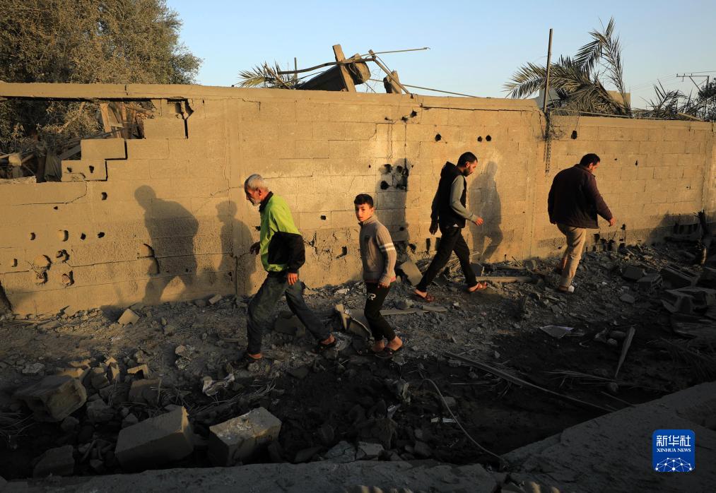 11月23日,在加沙地帶南部的汗尤尼斯,人們從以軍襲擊后破損的街頭走過。新華社發(fā)(亞西爾·庫迪攝)