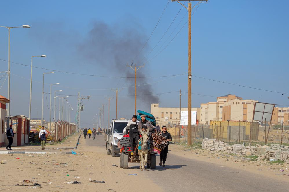 4日,以軍在社交媒體發(fā)布汗尤尼斯市地圖,以代表“必須撤離”的黃色標(biāo)注該市大約四分之一區(qū)域。多家媒體發(fā)布的民眾撤離視頻報(bào)道顯示,大部分人步行,還有人將家當(dāng)放在驢車甚至駱駝上,行進(jìn)隊(duì)伍死寂無(wú)聲。