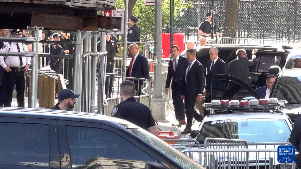 這張4月15日的視頻截圖顯示,美國(guó)前總統(tǒng)特朗普抵達(dá)紐約曼哈頓一家刑事法院出庭。新華社記者 丁曄 攝