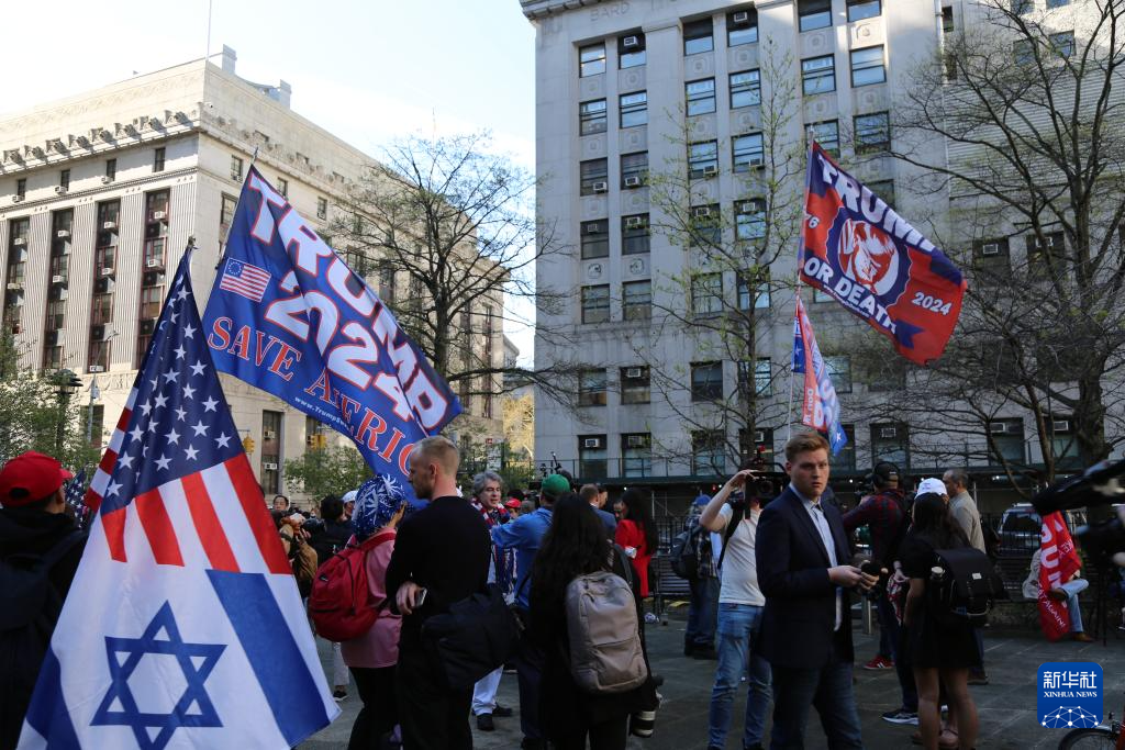 4月15日,在美國(guó)紐約,美國(guó)前總統(tǒng)特朗普的支持者在法庭前的公園舉行集會(huì)。新華社記者 劉亞南 攝