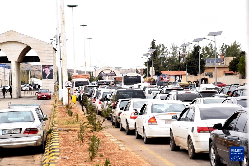 11月28日,在敘利亞中部佳迪達(dá)·亞布斯口岸,車輛等待通關(guān)。新華社發(fā)(蒙塞夫·梅馬里攝)