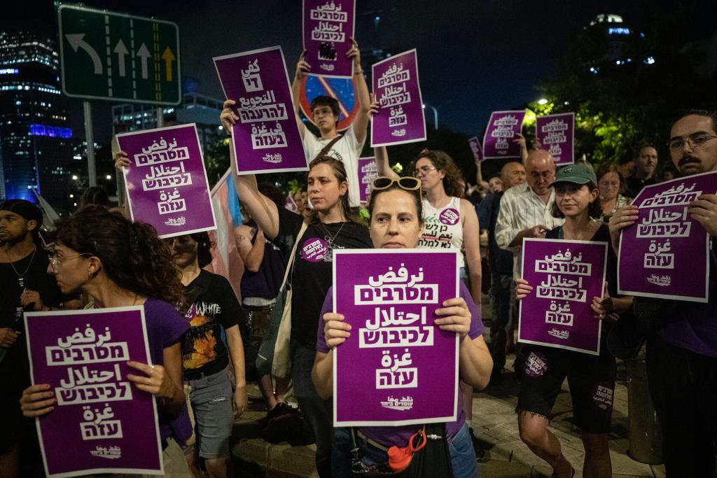 8月17日晚,人們在以色列中部城市特拉維夫的以色列國防部大樓附近參加游行示威活動,敦促以政府盡快與哈馬斯達成停火協(xié)議,讓所有被扣押人員獲釋。新華社記者陳君清攝