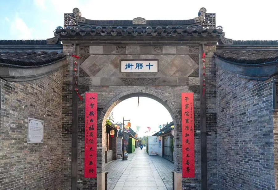 如果要列出泰州年輕人的熱門“打卡”地名單,十勝街一定榜上有名。這是海陵區(qū)八字橋歷史風貌區(qū)的主街,以宋太祖趙匡胤在此十戰(zhàn)十勝而得名。經(jīng)過“城市針灸”式改造,青磚黛瓦的泰州傳統(tǒng)民居、綿延曲折的仿古石板路,古宅、古樹、古井,無不訴說著泰州的歷史滄桑。