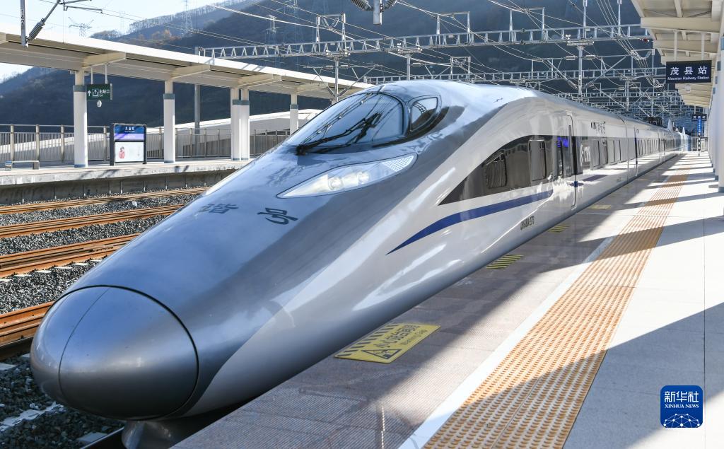 11月28日,C6008次首發(fā)列車(chē)駛?cè)氪ㄇ噼F路茂縣站。新華社記者 王曦 攝