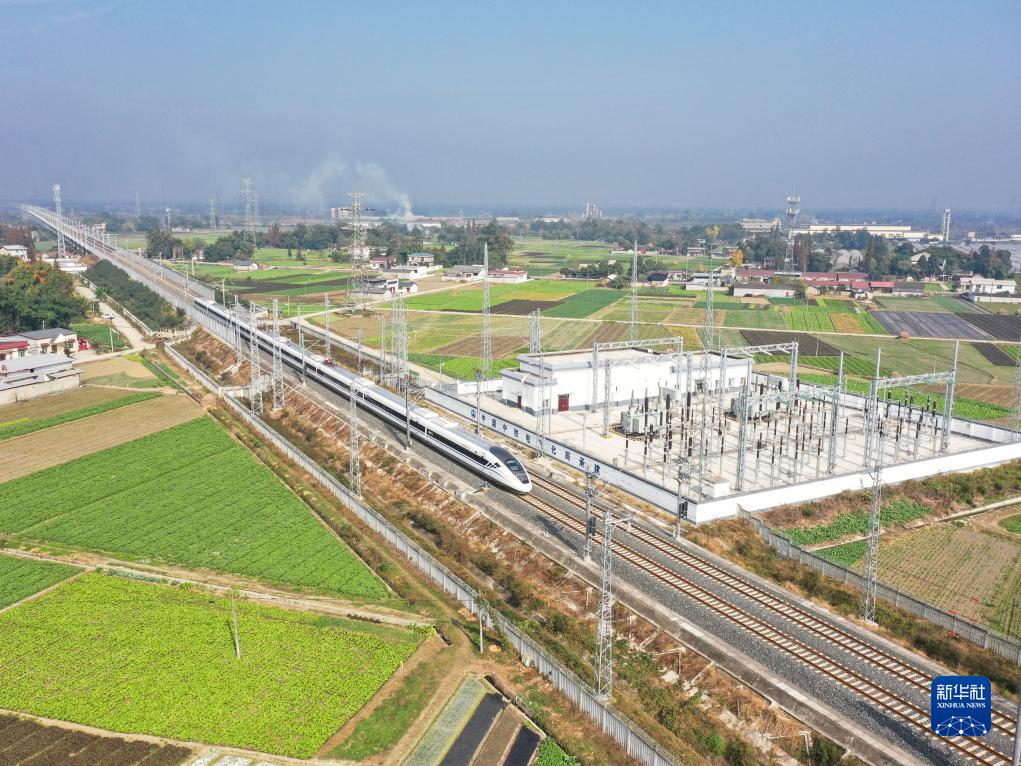 11月28日,俯瞰川青鐵路三星堆站(無(wú)人機(jī)照片)。新華社記者 江宏景 攝