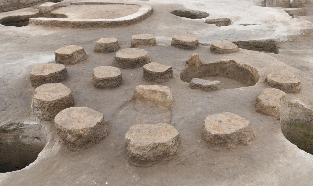 “其中標號為F9、F14的兩處建筑遺存,是由土墩立柱和土坯墻構(gòu)成的圓形地上式建筑,功能主要是糧食倉儲,這與時莊遺址發(fā)現(xiàn)的夏代早期糧倉遺跡的年代、結(jié)構(gòu)相近,此發(fā)現(xiàn)可為研究我國古代北方地區(qū)旱作農(nóng)業(yè)的發(fā)展水平、糧食存儲技術(shù)和建倉史提供嶄新材料!狈嚼颊f。