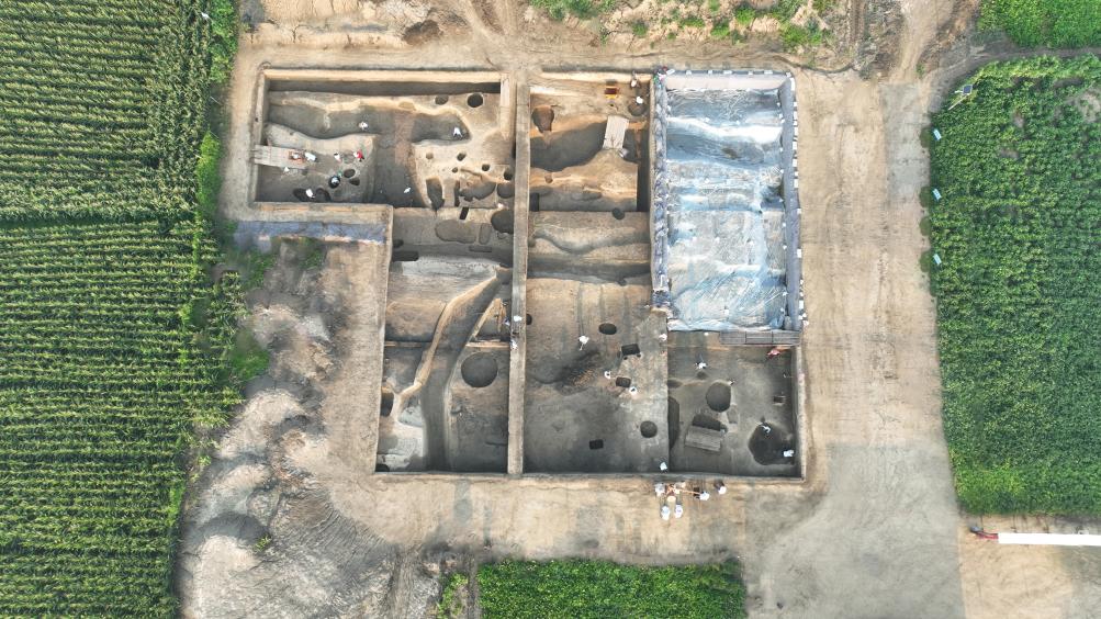 朱丘寺遺址考古發(fā)掘現(xiàn)場航拍圖