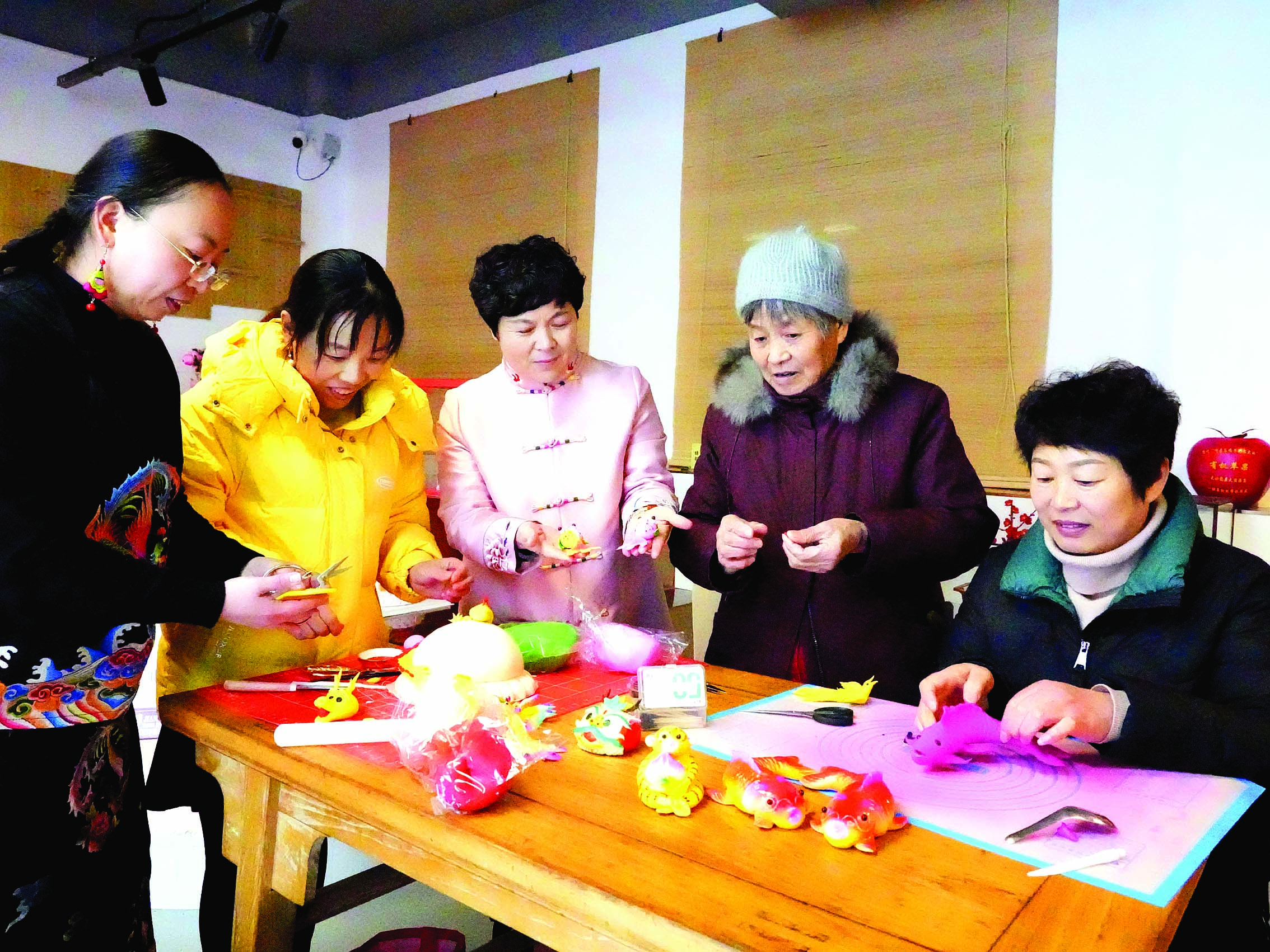 山東手造煙臺(tái)綜合展示體驗(yàn)中心棲霞館,手工藝人在制作手工用品。