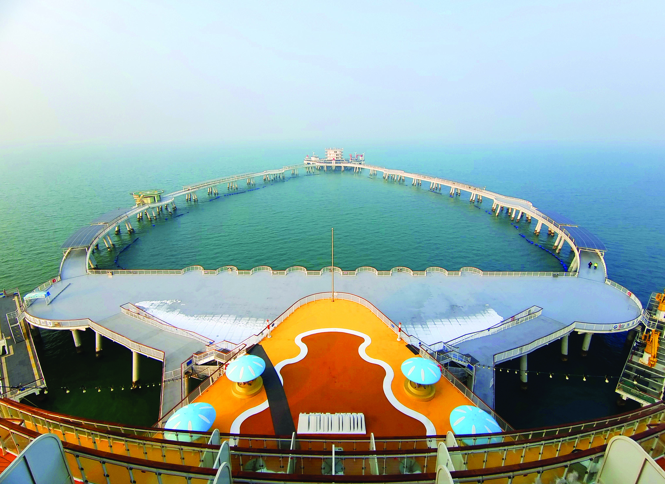 站在高處俯拍“耕海1號(hào)”現(xiàn)代化海洋牧場(chǎng)綜合試點(diǎn)項(xiàng)目。