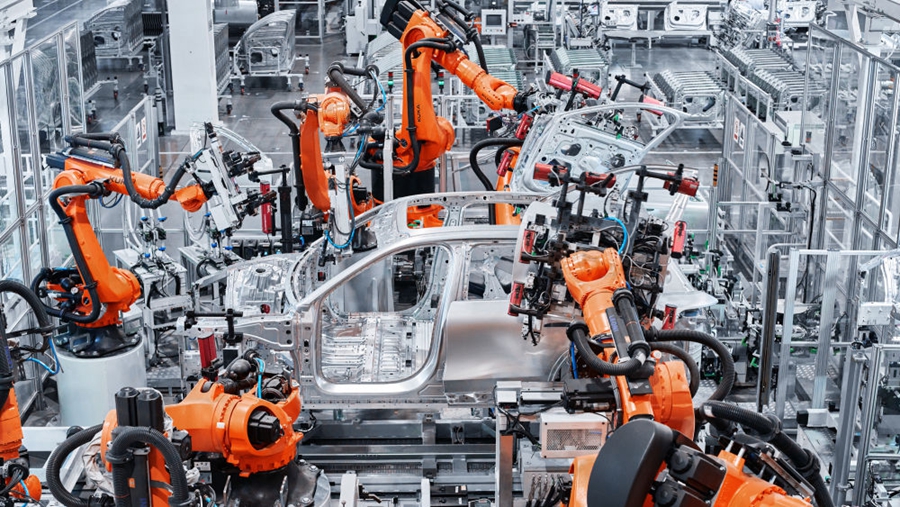 近日,在蔚來合肥第二生產(chǎn)基地,記者看到8萬平方米的車身車間里700多臺(tái)橙色機(jī)器人各司其職。涂裝車間設(shè)有“魔方”車輛存取平臺(tái),改變以往涂裝車間按訂單順序涂裝顏色、不停更換噴槍的方式,把平面庫存優(yōu)化為立體空間,設(shè)置6層408個(gè)車位,減少生產(chǎn)停頓?傃b車間用“飛地”自動(dòng)裝配島,將前后風(fēng)擋、玻璃車頂、儀表臺(tái)、尾門四大件集成在同一個(gè)全自動(dòng)裝配島完成安裝。