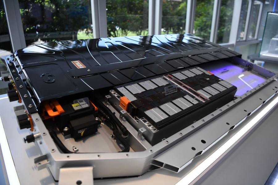 這是2023年7月3日拍攝的廣汽埃安展示的電池系統(tǒng)。新華社記者 鄧華 攝