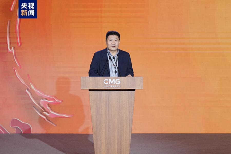 △中央廣播電視總臺(tái)編務(wù)會(huì)議成員姜文波介紹春晚技術(shù)創(chuàng)新亮點(diǎn)