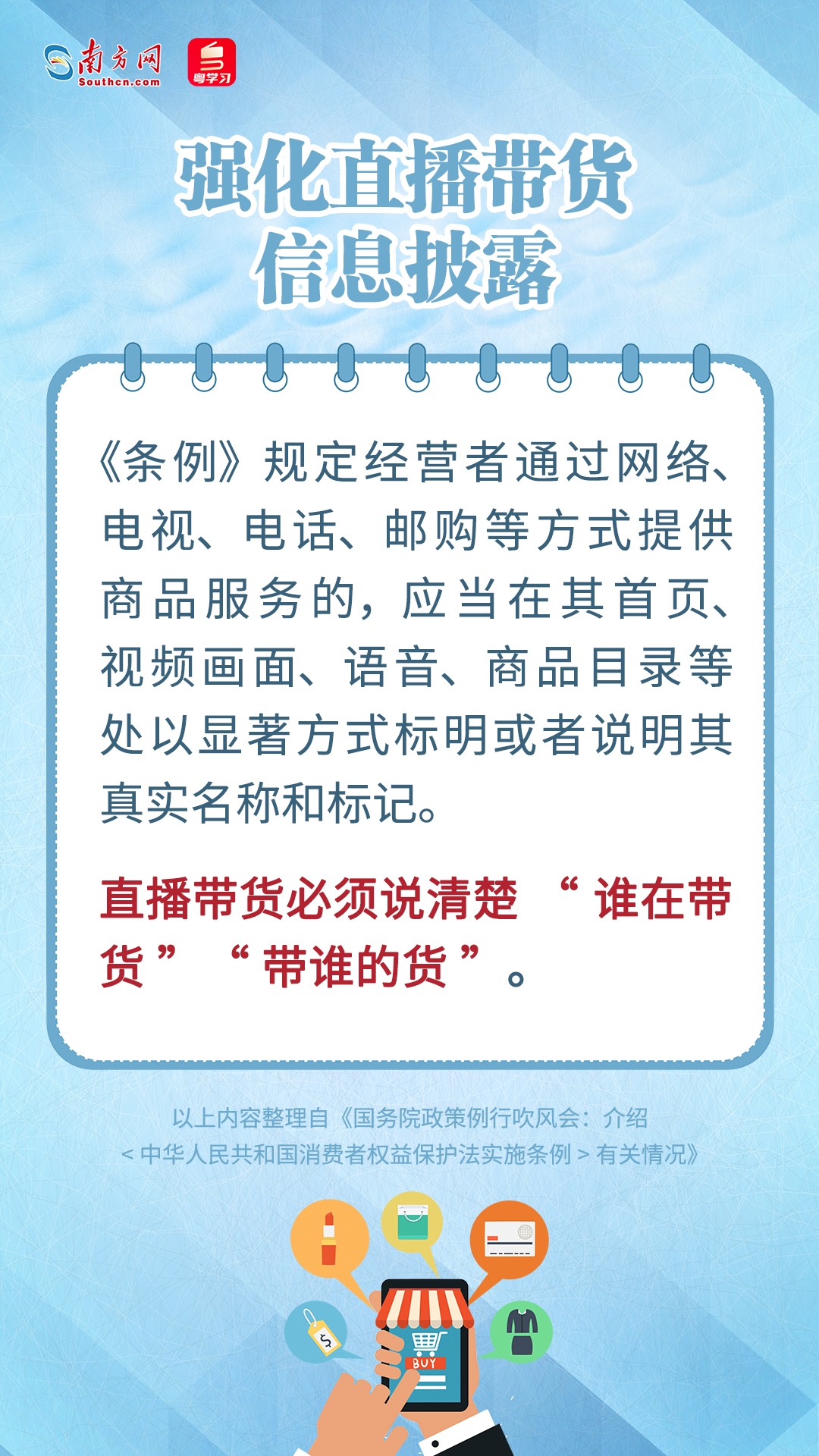 4月9日,國務(wù)院新聞辦公室舉行國務(wù)院政策例行吹風(fēng)會(直播回顧),邀請市場監(jiān)管總局和最高人民法院等有關(guān)負(fù)責(zé)人介紹近日發(fā)布的《中華人民共和國消費(fèi)者權(quán)益保護(hù)法實(shí)施條例》(下稱《條例》)有關(guān)情況。據(jù)介紹,此次《條例》針對直播帶貨、大數(shù)據(jù)殺熟、自動續(xù)費(fèi)、刷單炒信等網(wǎng)絡(luò)消費(fèi)亂象,出臺新規(guī)進(jìn)行規(guī)范。其中,特別規(guī)定直播帶貨必須說清楚“誰在帶貨”“帶誰的貨”。