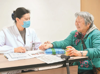 安徽省合肥市廬陽區(qū)養(yǎng)老服務(wù)指導(dǎo)中心與安徽中醫(yī)藥大學(xué)門診部(國醫(yī)堂)醫(yī)聯(lián)體合作揭牌,該醫(yī)聯(lián)體開設(shè)中醫(yī)科門診,助力老年群體樂享健康的晚年生活。圖為安徽中醫(yī)藥大學(xué)門診部(國醫(yī)堂)專家(左)為廬陽區(qū)老年人義診治療。 袁 兵攝(人民圖片)