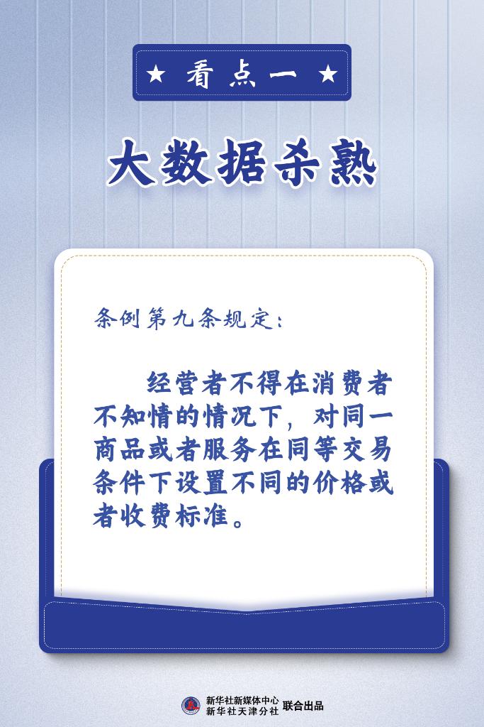 新華社天津6月29日電(記者白佳麗)消費者權益保護,事關億萬消費者的福祉!吨腥A人民共和國消費者權益保護法實施條例》將于今年7月1日正式施行。條例對大數(shù)據(jù)殺熟、自動續(xù)費難取消、預付式消費商家跑路等備受消費者關注的問題,進行了明確規(guī)定。記者梳理8大看點,帶您讀懂條例。