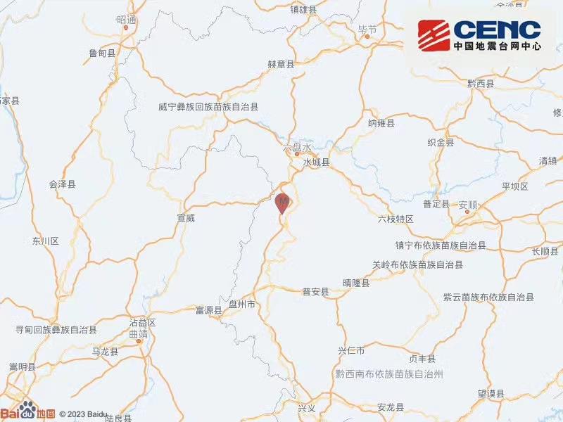 中國(guó)地震臺(tái)網(wǎng)正式測(cè)定:7月24日7時(shí)55分在貴州六盤水市水城區(qū)(北緯26.27度,東經(jīng)104.74度)發(fā)生4.6級(jí)地震,震源深度10千米。