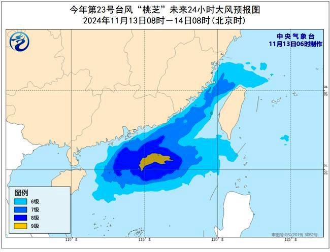 大風(fēng)預(yù)報:13日08時至14日08時,東海西南部、臺灣海峽、巴士海峽、南海北部、東沙群島、廣東中部和東部沿海、福建沿海將有6-7級,陣風(fēng)8-9級的大風(fēng),“桃芝”中心經(jīng)過的附近海域風(fēng)力可達(dá)8-9級,陣風(fēng)10-11級。