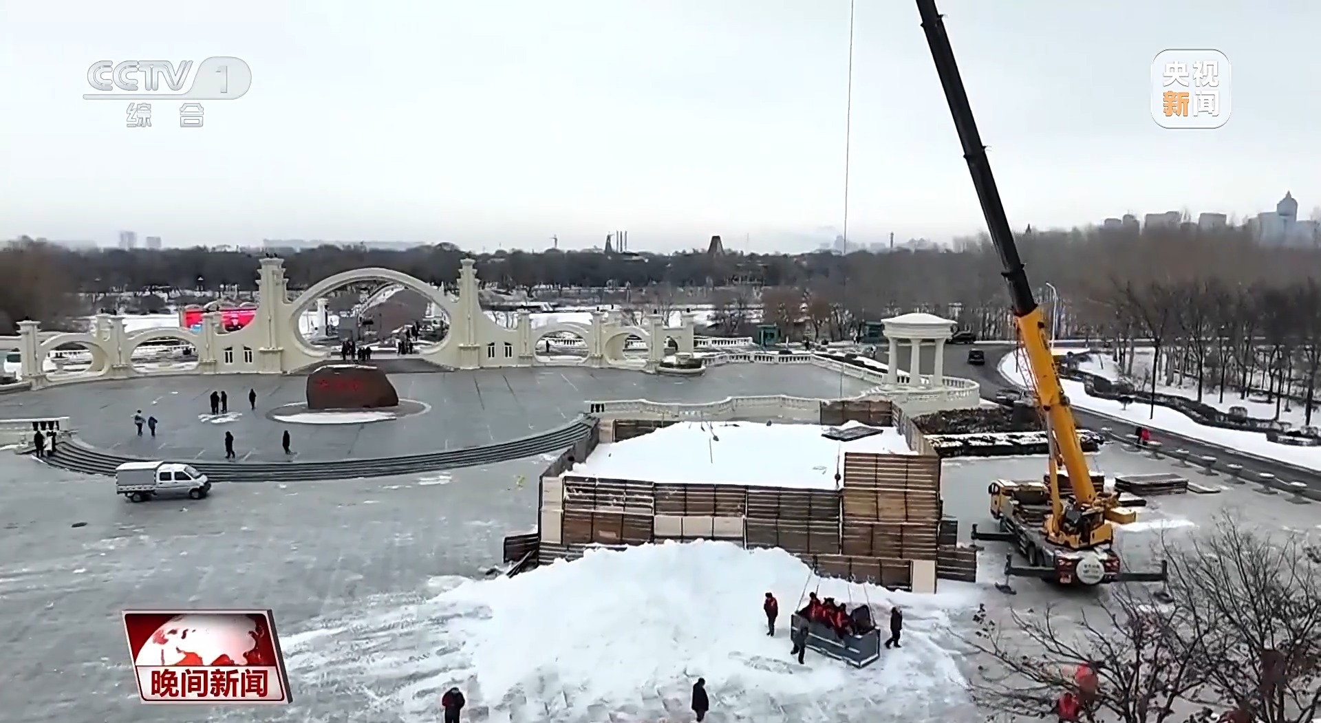 總臺(tái)記者 張程:在我身后,幾輛卡車正忙碌運(yùn)送人造雪,現(xiàn)場(chǎng)的吊車先堆出雪塊,再由工人師傅們把雪塊夯實(shí),為即將開(kāi)啟的雪雕工作做準(zhǔn)備。再過(guò)十天左右,我身后將會(huì)佇立起一座高20米的大雪人,預(yù)計(jì)經(jīng)過(guò)半個(gè)多月的施工建設(shè),預(yù)計(jì)12月中下旬哈爾濱冰雪大世界和太陽(yáng)島雪博會(huì)將同期開(kāi)園。