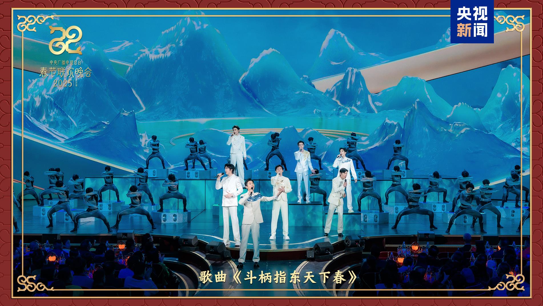 武術《筆走龍蛇》中,甄子丹與眾武者以舞臺為硯,一招一式剛柔并濟、揮灑自如,以太極武術的力與美,將李白《草書歌行》中的“筆走龍蛇”具象化,展現(xiàn)中國書法墨染千里、寫意山河的神與魂。歌曲《斗柄指東天下春》再現(xiàn)中國古代天文歷法智慧,朱亞文、白宇、劉宇寧、蔣奇明、許凱、丁禹兮、王安宇化作北斗七星,在虛實結合的影像空間里上演四季變換與星象流轉,帶觀眾走向充滿生機與希望的乙巳蛇年。整場晚會中,百余種非遺巧妙出現(xiàn),與大家共度熱熱鬧鬧的“非遺版”春節(jié)。