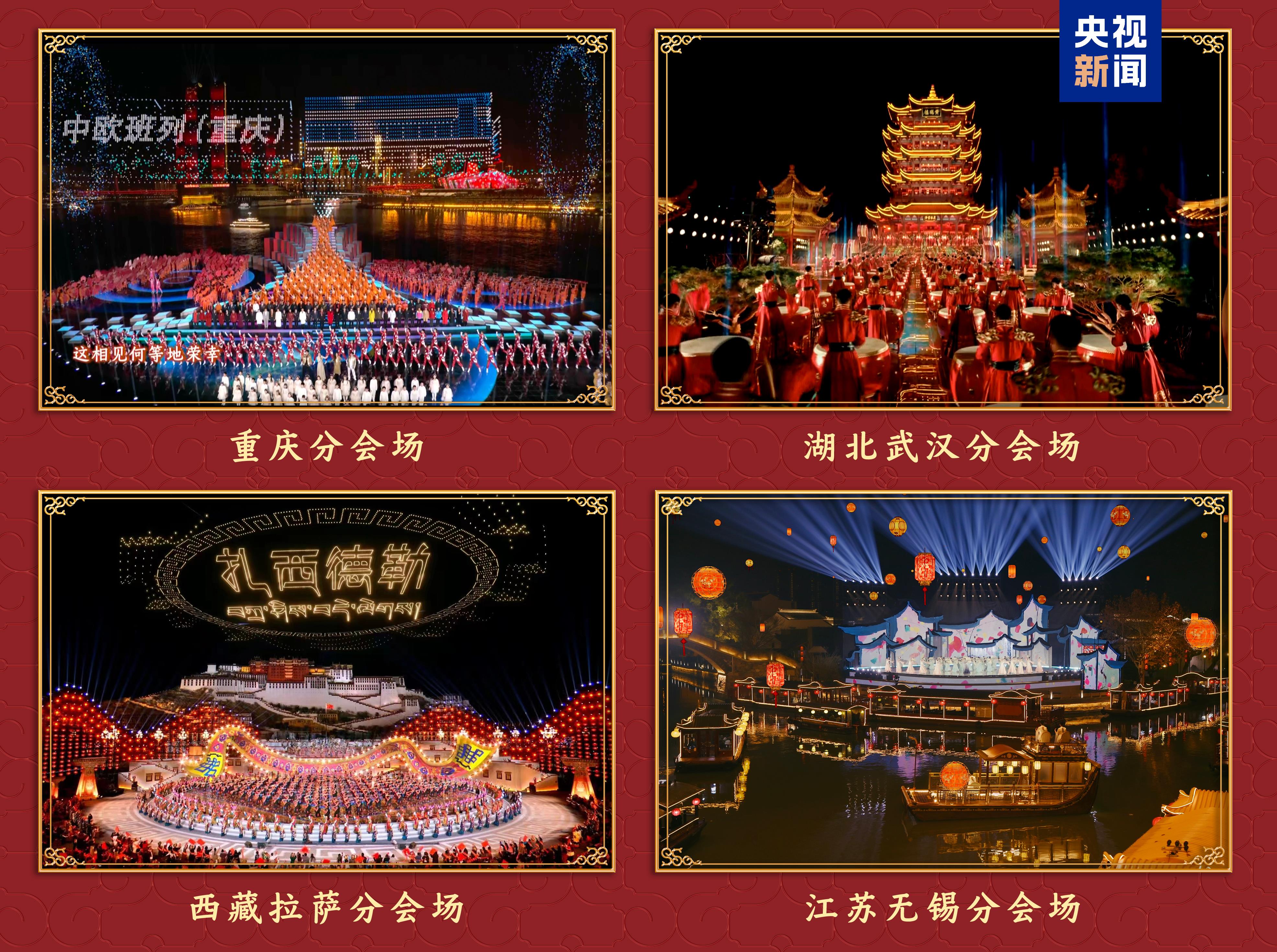 重慶、湖北武漢、西藏拉薩、江蘇無錫四地分會場遙相呼應,一幅幅獨具城市魅力的畫卷,勾勒出祖國山河的壯麗圖景。重慶分會場以“慶·新春”為主題,千廝門大橋的“新春新潮夜”情景音樂秀、780輛新能源汽車智控燈陣和3000架無人機編組的光影聯(lián)動,展現(xiàn)山城8D立體的無限魅力。湖北武漢分會場《星漢耀江城》煙火氣濃郁、人情味滿滿,新派戲曲將京、楚、漢三劇種融匯編創(chuàng),雜技與傳統(tǒng)楚樂創(chuàng)意呈現(xiàn),鳳凰圖騰振翅欲飛,“英雄城市”深厚的文化底蘊和大江大湖的豪爽之氣一覽無遺。西藏拉薩分會場千人鼓潮融匯熱巴舞、卓舞等西藏傳統(tǒng)舞蹈,才旦卓瑪領銜唱出中華民族一家親的團圓景象;現(xiàn)場還為定日縣送去誠摯祝福,表達出人民至上、風雨同舟、重建美麗新家園的堅定信心;那曲薩普雪山、昌都來古冰川等自然風光遼闊壯美,令人神往。江蘇無錫分會場在江南水鄉(xiāng)上演一場穿越古今的《無錫景·家國情》,曲水穿城而過,評彈曲調婉轉流長,文人墨客揮毫潑墨,千年運河之上千帆競發(fā),在源遠流長的文化與磅礴的工業(yè)力量中展現(xiàn)“太湖明珠”的豐沛迷人。