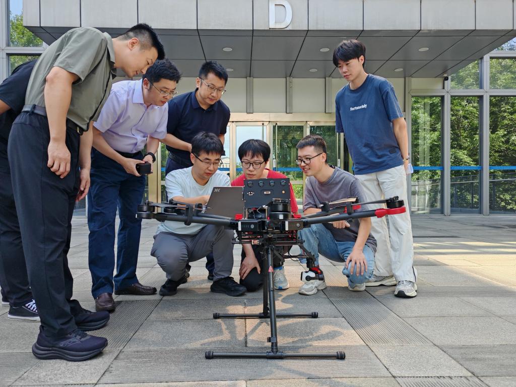 8月13日,北京航空航天大學(xué)師生進(jìn)行自研仿復(fù)眼偏振組合導(dǎo)航系統(tǒng)無人機(jī)聯(lián)調(diào)測試。(張之軒 攝)