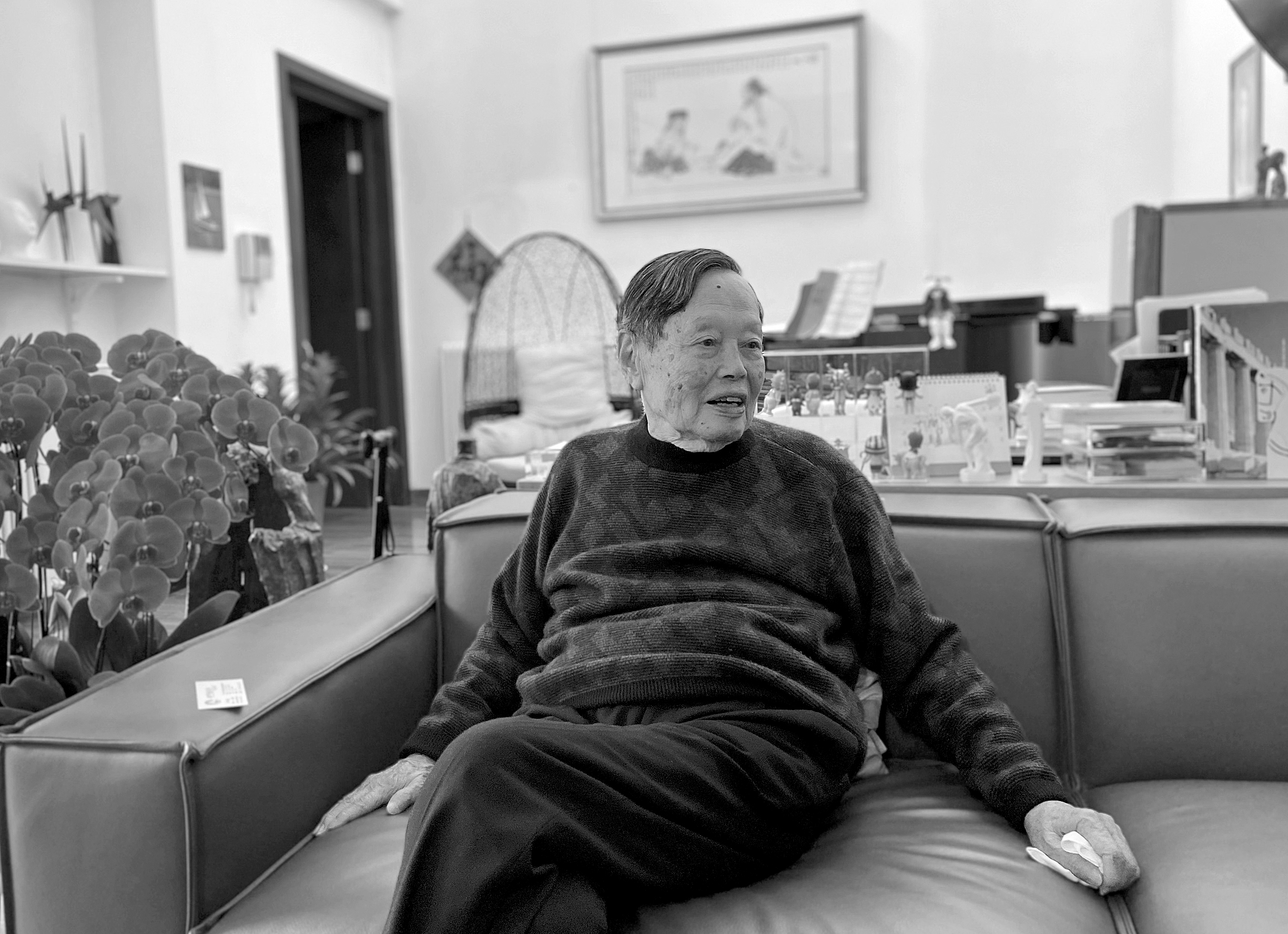 2021年4月,楊振寧在清華大學的住所接受新華社記者采訪。