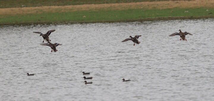 降落的琵嘴鴨準備覓食。