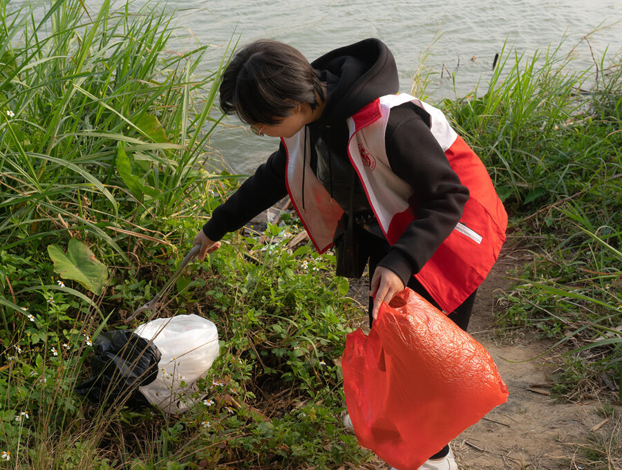 在江邊的草叢里,惠報志愿者彭覓笑彎著腰,專注細致地清理著隱藏在草叢間隙里的垃圾。在她身后不遠處,放有志愿者們收集的幾袋垃圾;輬笾驹刚吒蓜攀悖屧谂赃\送垃圾的環(huán)衛(wèi)工人也豎起大拇指點贊:“謝謝你們,你們經(jīng)常來,現(xiàn)在公園的環(huán)境變得越來越好,感謝你們的努力。”