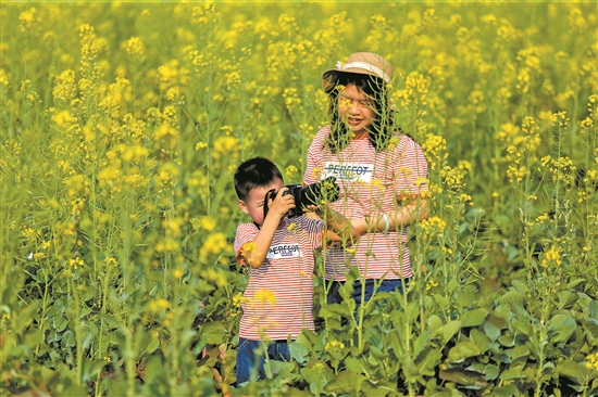 在油菜花田定格美好春光 吳偉榮 攝
