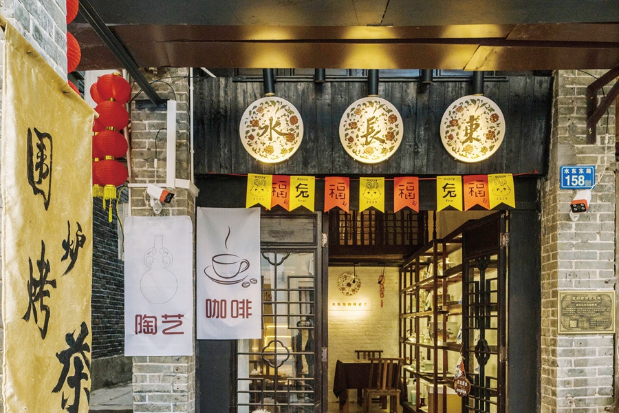 “我倆打算守著這家咖啡瓷藝館到老!蹦暧5旬的陳智揚(yáng)和妻子坐在店門(mén)外的茶座旁,悠閑地曬著太陽(yáng)、喝著下午茶。一旁的水東街人流如潮,時(shí)有游客或顧客入內(nèi),無(wú)不對(duì)店鋪的建筑和裝飾表示贊嘆。