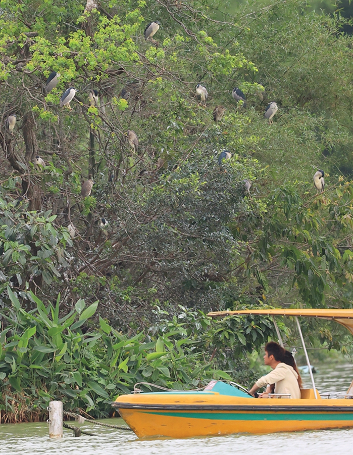 惠州西湖有眾多鳥(niǎo)島,分別位于平湖、豐湖、陳公堤旁和南湖,它們是鳥(niǎo)類重要的繁殖地。每年春夏之交,蒼鷺、夜鷺、白鷺、八哥、牛背鷺、黑水雞、鷿?jì)e、紅山椒、長(zhǎng)尾藍(lán)鵲、翠鳥(niǎo)、伯勞、蠟嘴、黑白鹡鸰、珠頸斑鳩等多種鳥(niǎo)類在西湖鳥(niǎo)島繁衍后代。根據(jù)2019~2022年《惠州市生物多樣性本底調(diào)查報(bào)告》顯示,惠州市記錄記載鳥(niǎo)類333種,惠州西湖鳥(niǎo)島上的鳥(niǎo)類有數(shù)百種之多。