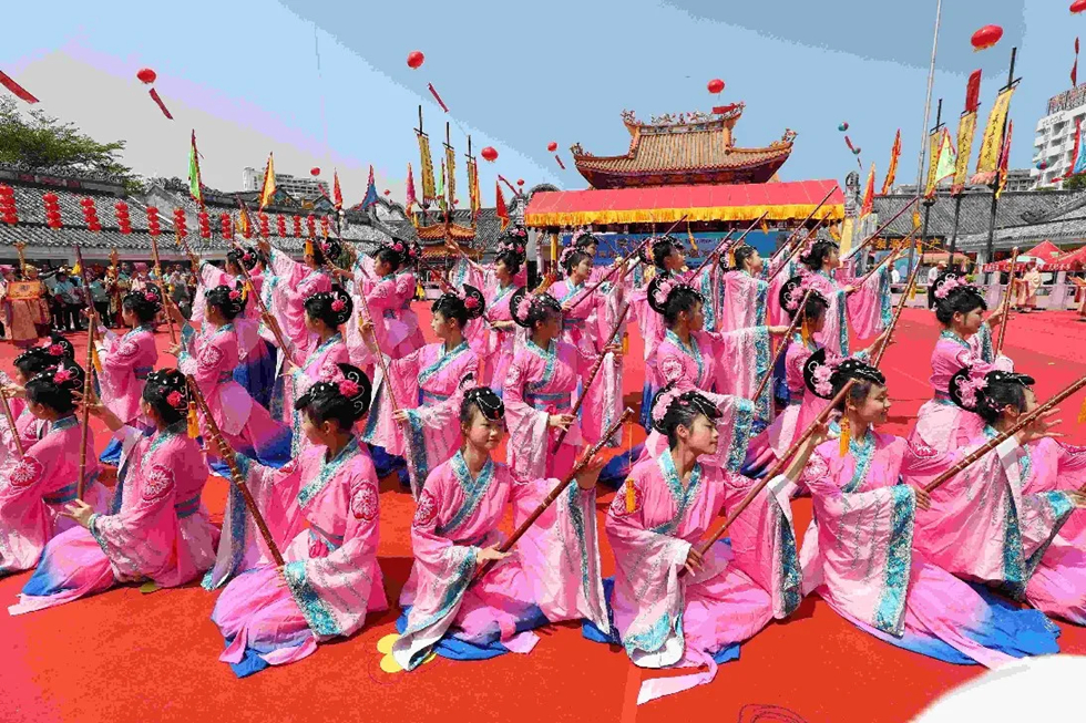 開(kāi)幕式后,舉行了隆重莊嚴(yán)的媽祖祭典儀式和文化氛圍濃厚的英歌舞、漢服巡游等傳統(tǒng)藝術(shù)表演。