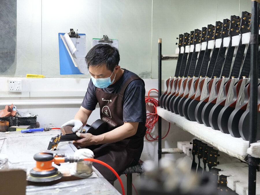 上世紀(jì)90年代臺商帶來的吉他產(chǎn)業(yè),在這里成長壯大。最高峰時(shí),秋長擁有近200家吉他制造相關(guān)企業(yè),生產(chǎn)出全國2/5、全球1/5的吉他和全球7成的尤克里里,行業(yè)總產(chǎn)值達(dá)10億元。
