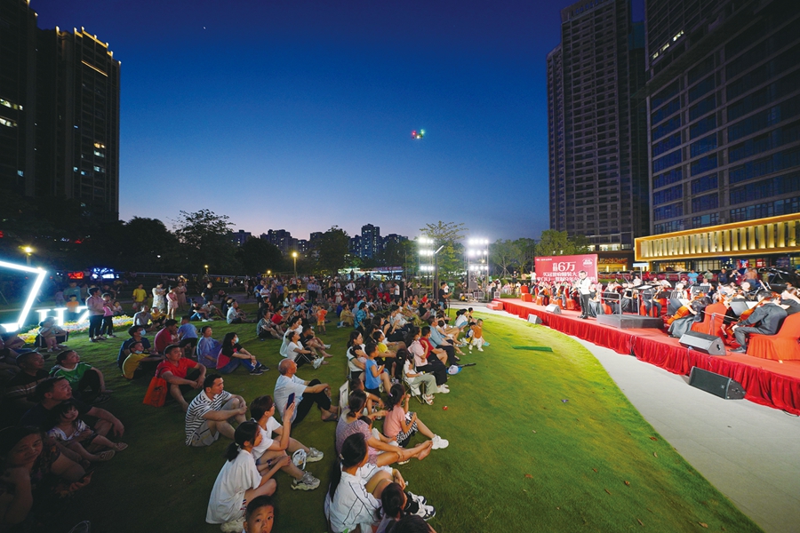 5月28日晚,惠州文化館館辦團隊惠州愛樂青少年樂團受邀到仲愷高新區(qū)中星公園的草坪公園,舉行了一場動漫主題音樂會。當(dāng)晚,惠州愛樂青少年樂團的小樂手們在公園的草地上,輕快地奏響美妙的音樂。曼妙的音符在初夏的落日余暉中飄蕩,數(shù)百位市民近距離感受音樂的魅力,樂團浪漫的演奏讓公園的夜晚沉醉。