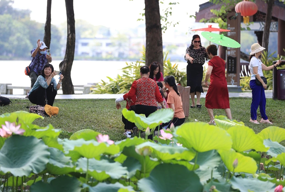 夏日荷花這道美麗的風(fēng)景線讓市民趨之若鶩。