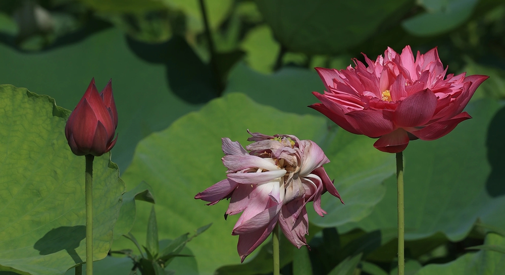 盛開的荷花給燥熱的夏季帶來了愉悅的好心情。