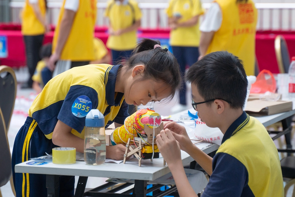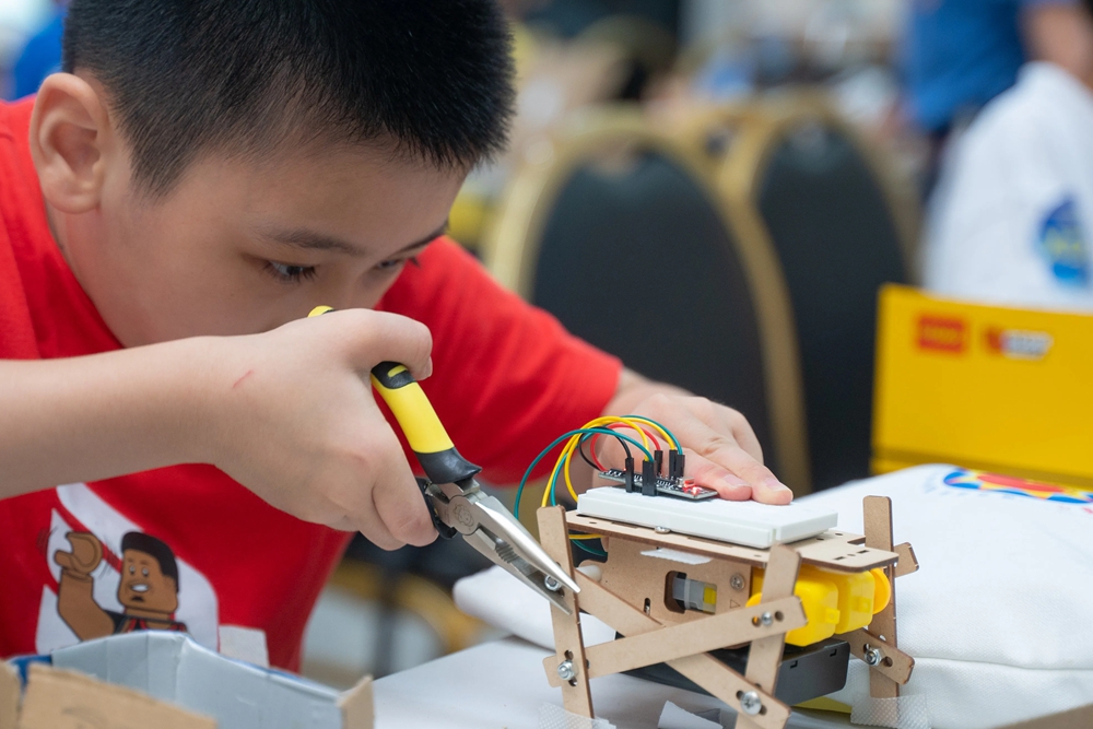 選手在制作組裝機器人。