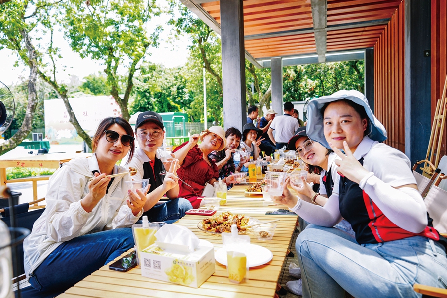 臨近中午,荔枝節(jié)又變了模樣,農(nóng)家宴席的鍋灶在會場熱氣蒸騰,來自惠州某車友會的會員家庭圍坐一起享受荔枝燜雞的美味。新鮮的鄉(xiāng)土食材讓大家胃口大開,個個贊不絕口。據(jù)了解,本次蘆洲鎮(zhèn)生態(tài)荔枝節(jié)除了接待保障個人出行的游客體驗,還設計了專屬的團建活動菜單,可以根據(jù)需求定向安排體驗荔枝采摘、荔枝DIY和荔枝美食,讓團隊游客更便捷更沉浸的感受原生態(tài)鄉(xiāng)土風情。