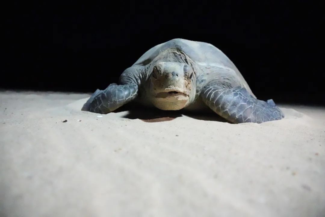 此次是這位海龜媽媽今年的第四次上岸,前三次來的都是后半夜,這次則是上半夜,而且間隔19天,大大超出二周產(chǎn)一次卵的時間。二周時間已過,當(dāng)大家以為她可能產(chǎn)完卵不再上岸了,保護區(qū)的技術(shù)員始終沒有放棄,連續(xù)多日通宵等待,最終等來她的第四次上岸。