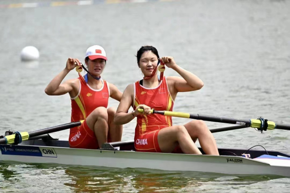 船槳齊動,劈波斬浪。8月6日,在成都舉行的第31屆世界大學生夏季運動會賽艇項目女子雙人單槳決賽中,中國組合周羽秀、張佩歆以7分31秒86的成績獲得冠軍,為中國隊拿到本次大運會賽艇項目首金。