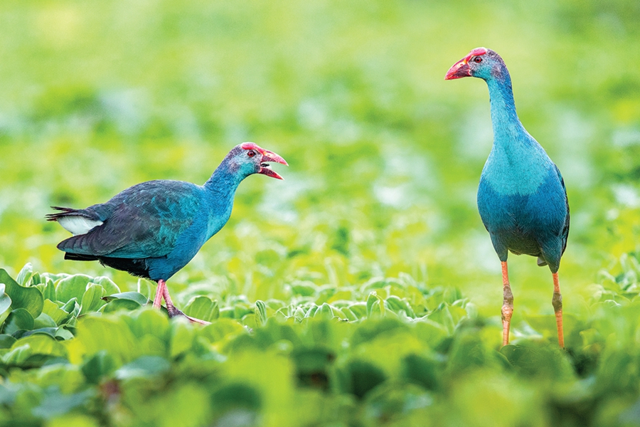 紫水雞是一種極其珍貴的大型水鳥,被譽為“世界上最美麗的水鳥”,其身上除尾下覆羽為白色外,其余羽毛均為藍紫色,腳暗紅色。紫水雞是留鳥,活動于海拔1900米以下的流速較緩或平靜、多植被覆蓋的開闊水面和富營養(yǎng)化的濕地。該物種主要分布于非洲、亞洲南部和大洋洲,在我國僅罕見于西南部地區(qū),屬世界級瀕危鳥類,19世紀后在世界各地都非常罕見。