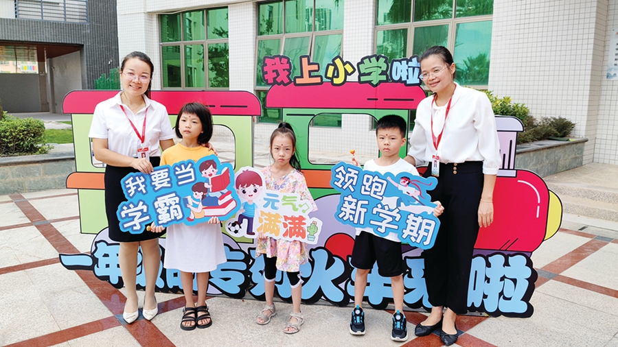 惠州市惠城區(qū)翠竹學校迎來了一年級的小萌新。孩子們在家長的陪伴下穿過啟智門,跨過承載著“祝!钡目鐧,在富有國防教育特色的打卡點前拍照留念,記錄這難忘的時刻。
