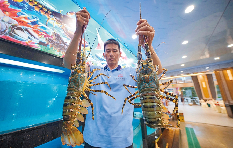 記者在酒樓內(nèi)看到,新店一樓設(shè)置了宴會(huì)廳及多個(gè)展示區(qū),酒柜上擺滿(mǎn)白酒、紅酒及洋酒琳瑯滿(mǎn)目的各種酒類(lèi),其中有不少年份久具有收藏價(jià)值的老酒。作為店里重要食材的海鮮展示區(qū),也設(shè)置在一樓,帝王蟹、澳洲龍蝦、鮑魚(yú)、生蠔、象拔蚌、石斑魚(yú)、各種貝殼類(lèi)……幾十種生猛海鮮在水池里自由遨游,在顧客面前展示著生龍活虎的姿態(tài)!拔覀兯猩献朗巢亩际乾F(xiàn)場(chǎng)挑選捕撈,現(xiàn)點(diǎn)現(xiàn)煮,主打的就是新鮮!秉S楚斌順手撈起一只肉質(zhì)肥美的帝王蟹,向眾人展示起來(lái)。