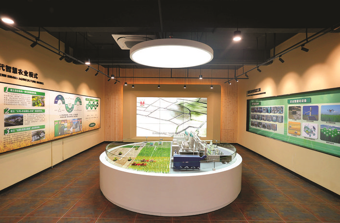 在龍門縣絲苗米省級(jí)現(xiàn)代農(nóng)業(yè)產(chǎn)業(yè)園的龍門絲苗米文化體驗(yàn)館內(nèi),不僅可以看到“袁隆平大米”產(chǎn)品展示,還可以看到袁隆平超級(jí)水稻的模型展示和展板介紹。該館還設(shè)立了關(guān)于袁隆平的展示專區(qū),袁老的雕像安然矗立,手持稻穗,目光深邃地凝視遠(yuǎn)方。雕像背后是水車和浮雕拼圖,間有田野圖案,將袁隆平躬耕田壟、科研攻堅(jiān)的瞬間定格,引人注目和無限遐思。